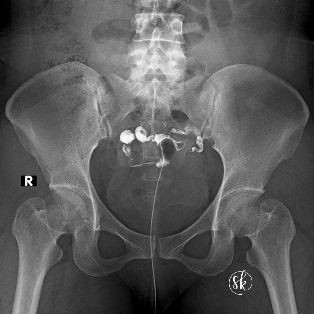 HSG adalah sama seperti HyFoSy, tetapi aliran pewarna akan dapat dilihat dengan menggunakan X-ray berbanding dengan menggunakan ultrasound untuk HyFoSy. Ia boleh menjadi agak tidak selesa sedikit tetapi kebanyakan wanita dapat melaluinya dengan baik. Terdapat juga sedikit risiko jangkitan yang boleh merebak dari vagina ke pelvis. Oleh itu saringan untuk jangkitan ditawarkan sebelum prosedur atau anda akan diberikan antibiotik.